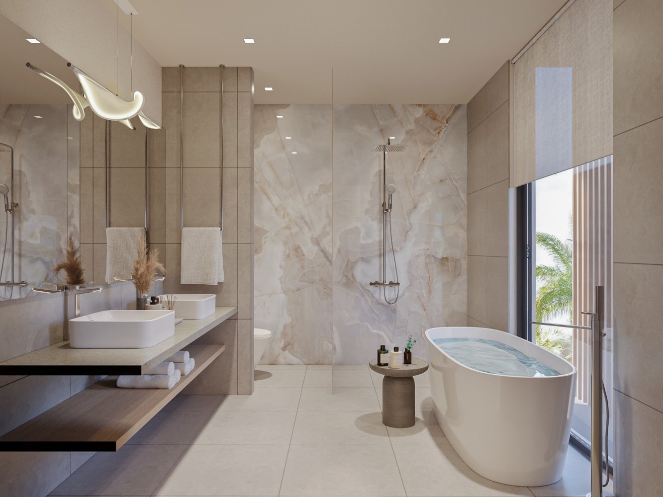 Full lifestyle facilities within the development including restaurant, bar, fitness center, padel court, yoga and spa areas, co-working space, 25-meter swimming pool, kids’ zone, playground, and retail shops